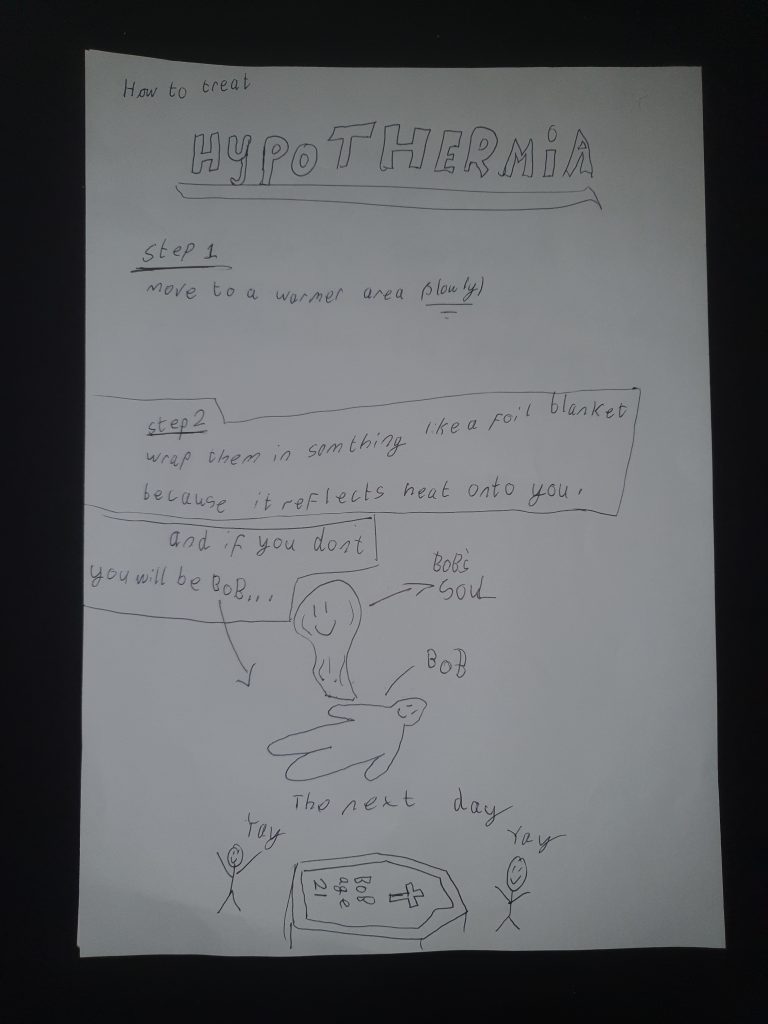 Here’s one poster showing what to do with someone who is experiencing hypothermia… and what happens if you don’t treat it!!!