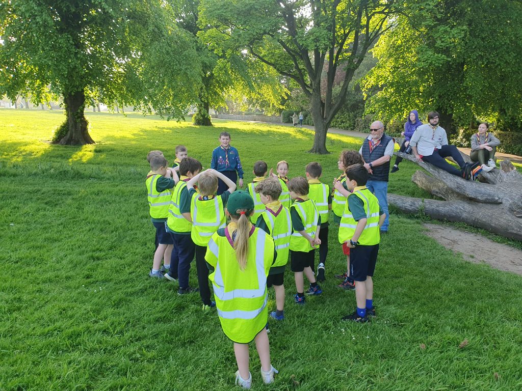On Friday the cubs went up to the park to follow instructions whilst blindfolded, and they also played a game of Chinese whispers to investigate how messages can change as they’re passed from person to person.