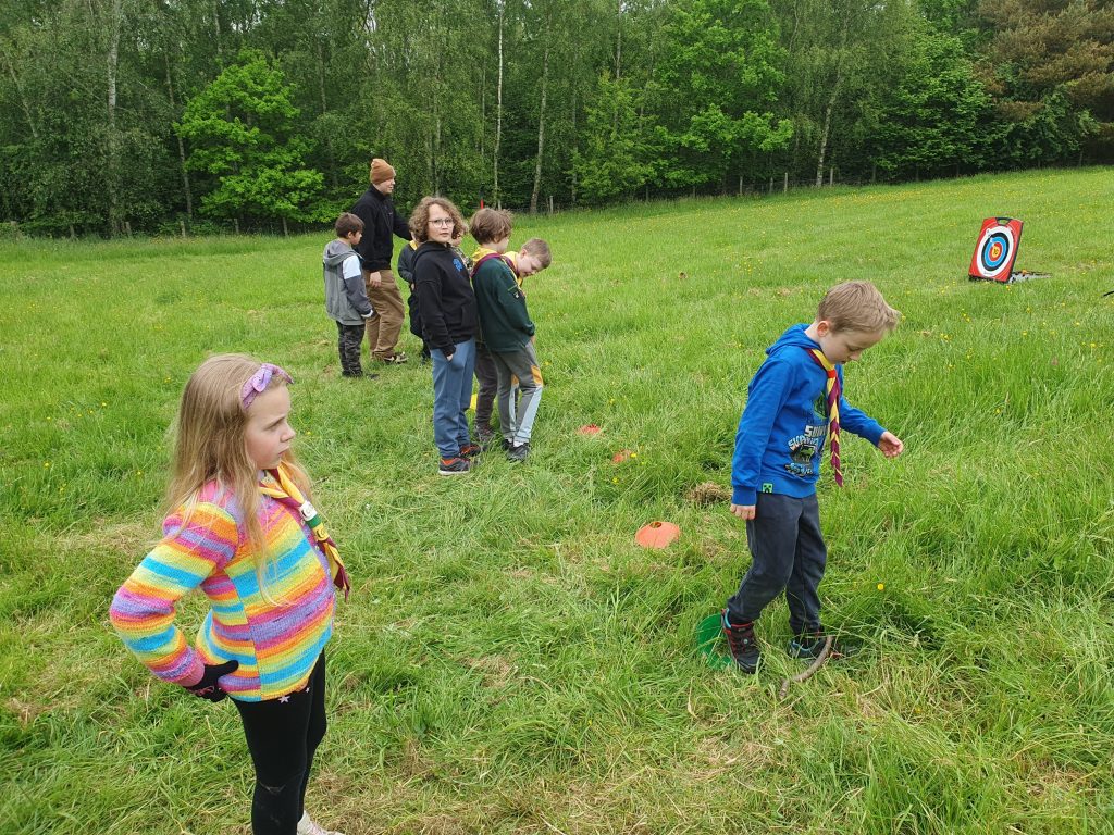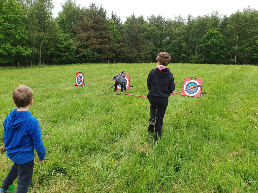 The archery was done outside as the weather was generally good, and most of the young people could at least hit the target!